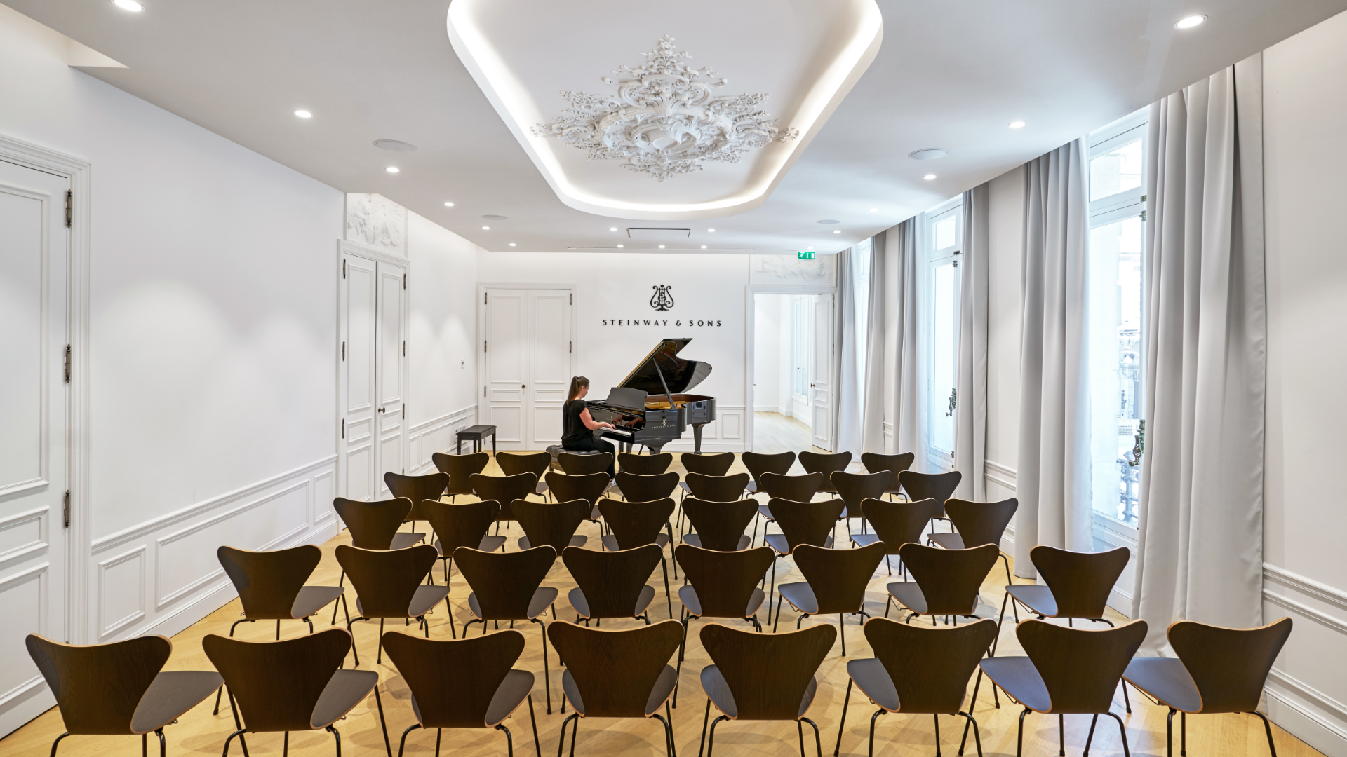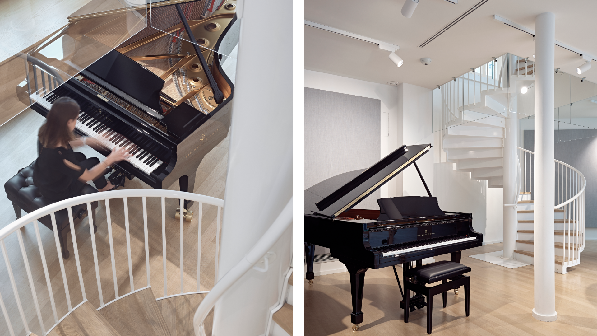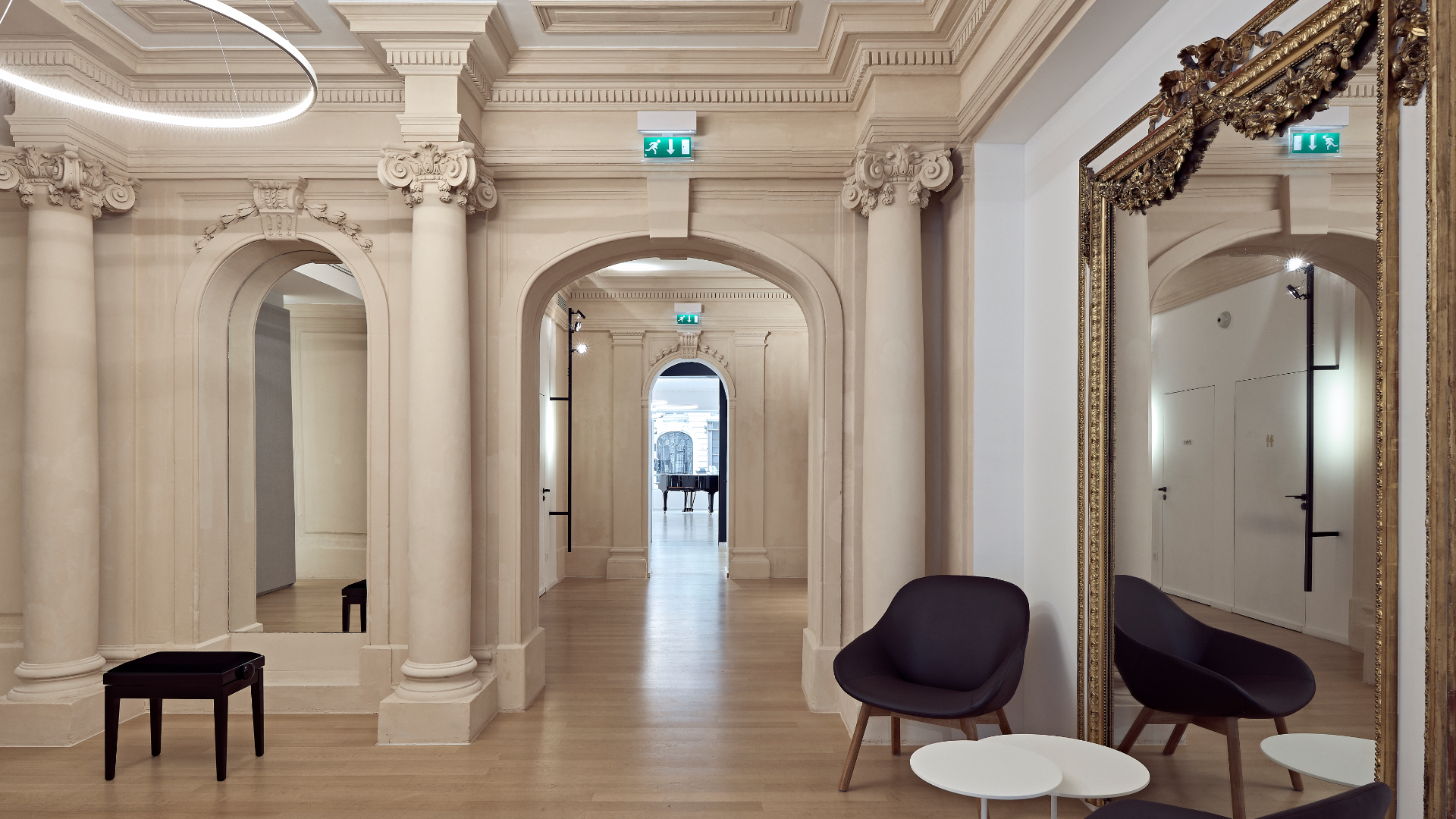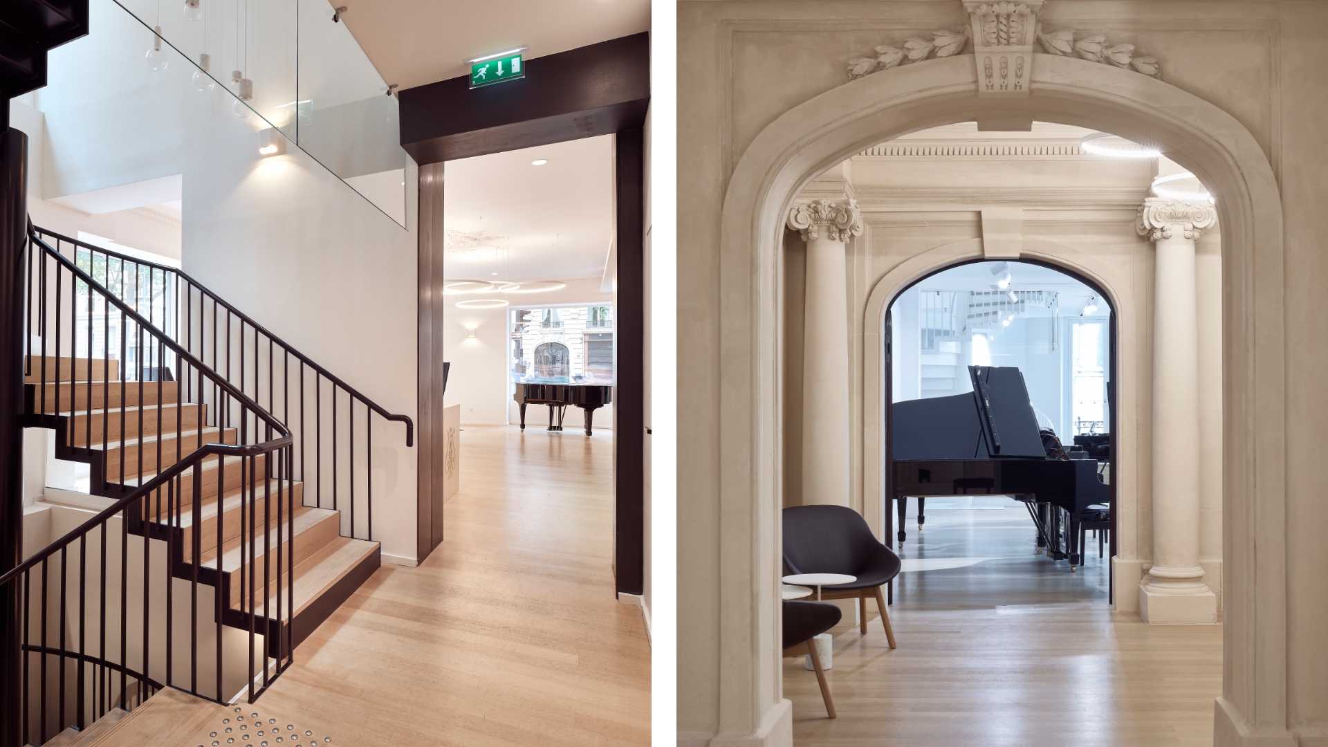 Iconic piano manufacturer Steinway & Sons desired to renovate a stunning 19th Century building for use as its first showroom in Europe for 140 years. The refurbishment needed to respect the heritage of the building and its Boulevard St Germain location while providing modern space with the specific environmental conditions from which to showcase its world-class instruments. In addition to the showroom, the client requested rehearsal spaces for visiting artists and music academy students and a 50-seat recital hall. Reid Brewin Architects combined the latest technical features with bespoke LED lighting arrangements, spiral staircases and glazed balustrades to create a bright, convivial setting where musicians and the public can come together to celebrate music, culture and wonderful design. Copyright © Photographs Jérôme EpaillardProject