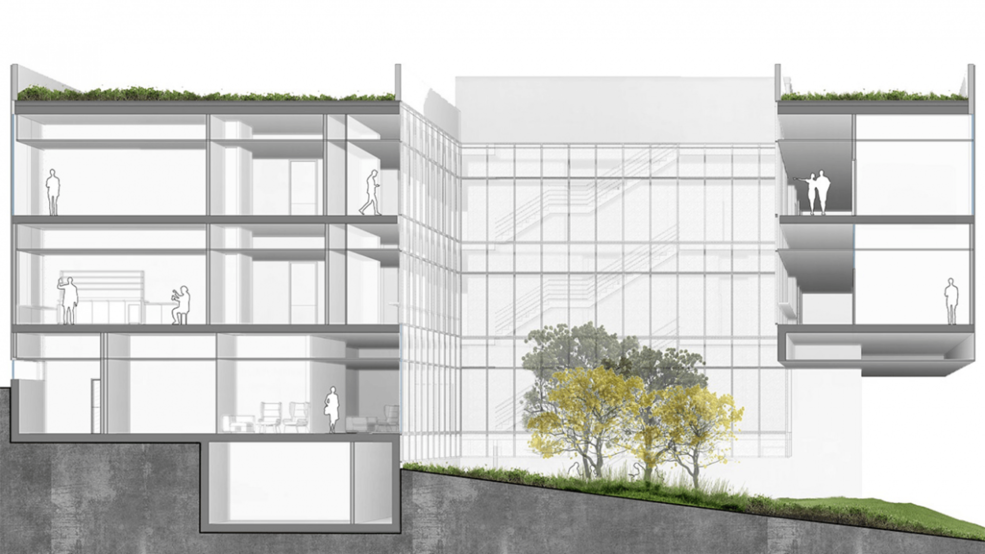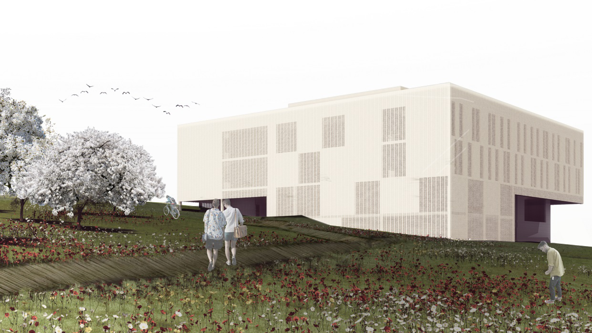 Réalisé pour le compte du ministère espagnol de l'Économie, de l'Industrie et de la Compétitivité, ce concours portait sur la conception, la construction et la réalisation d'un nouveau bâtiment au sein d'un important centre de recherche espagnol. L'agence espagnole 3G office (qui fait partie du réseau IDeA) a été notre partenaire local sur ce projet. Le bâtiment que nous avons imaginé - d'une superficie totale d'environ 1 200 m² - s'articule autour d'un patio central, un élément commun de la construction espagnole. Élément de base de l'architecture passive, la terrasse permet une ventilation naturelle et une régulation de la chaleur, tout en servant d'espace récréatif qui crée des opportunités de socialisation pour ses occupants. Autour de la cour centrale se déploie un couloir couvert qui alterne entre un passage partiellement ouvert - exposé aux éléments d'un côté - et un tunnel de verre entièrement fermé de l’autre, ce dernier donnant accès aux espaces intérieurs. En créant une barrière naturelle au vent dominant du nord et une protection contre les rayons du soleil venant du sud et de l'ouest, le bâtiment permet une utilisation prolongée de l'espace extérieur tout au long de l'année. L'aile sud est également conçue pour bénéficier de vues dégagées sur la ville très étendue de Salamanque, depuis les espaces communs et le patio du rez-de-chaussée. La conception de la structure - et son emprise restreinte sur le terrain– permet de protéger une zone de terrain qui pourra être consacrée à la nature, à la culture de plantes et à la végétation. De son côté, le bâtiment lui-même comprend un accès piéton et la connexion avec un parking à proximité. Le projet est également conçu pour structurer l'accès des utilisateurs en fonction des niveaux de confidentialité. Le rez-de-chaussée est consacré à des zones ouvertes d'échanges, tandis que les deux étages supérieurs - qui abritent les laboratoires et les bureaux privés - ont été imaginés de manière à empêcher tout accès indésirable. RBA a également tenu à éviter les couloirs étroits et monotones souvent associés aux laboratoires de recherche. L'équipe a ainsi privilégié les espaces polyvalents qui amplifient la sonorité "vivante" des personnes présentes dans le bâtiment.Détails du